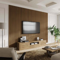 - Cut the Acoustic Wood Panel and install it around the TV or shelf. In this case, the wall behind will be visible.
